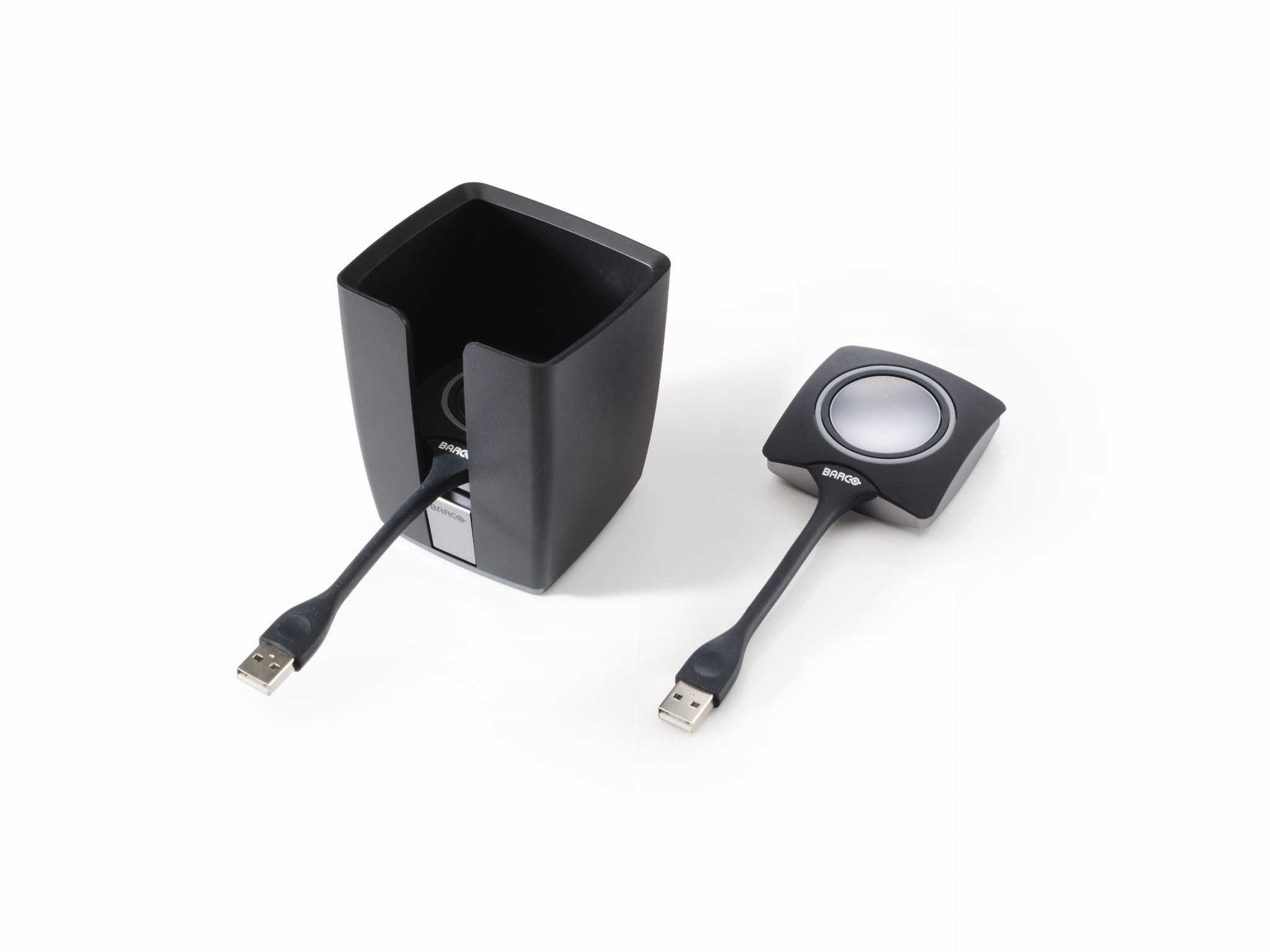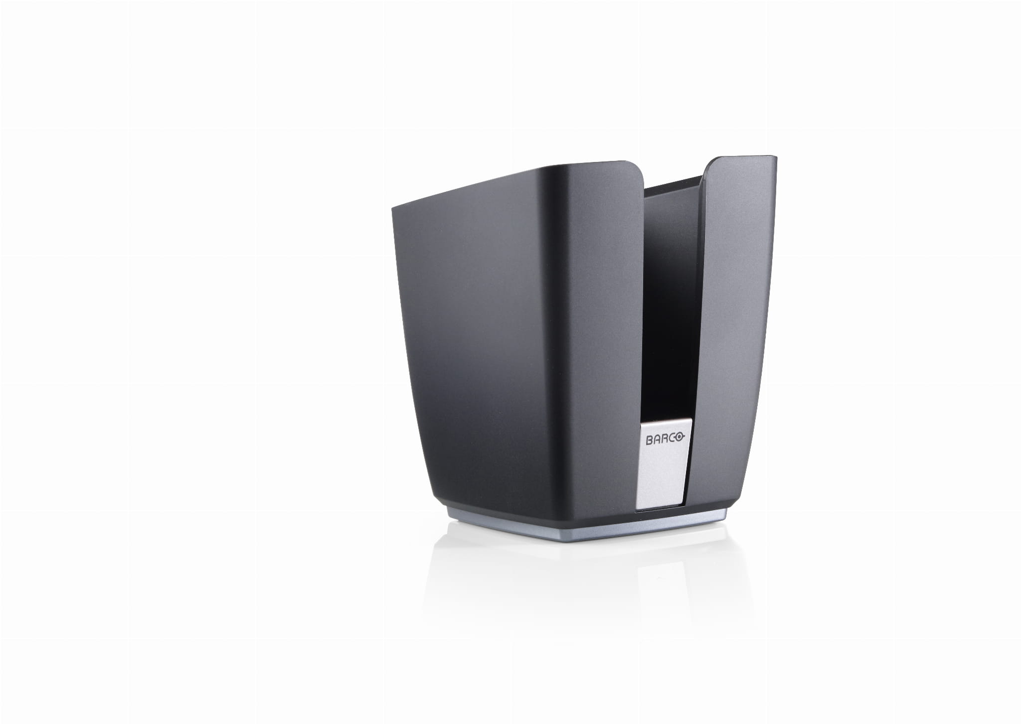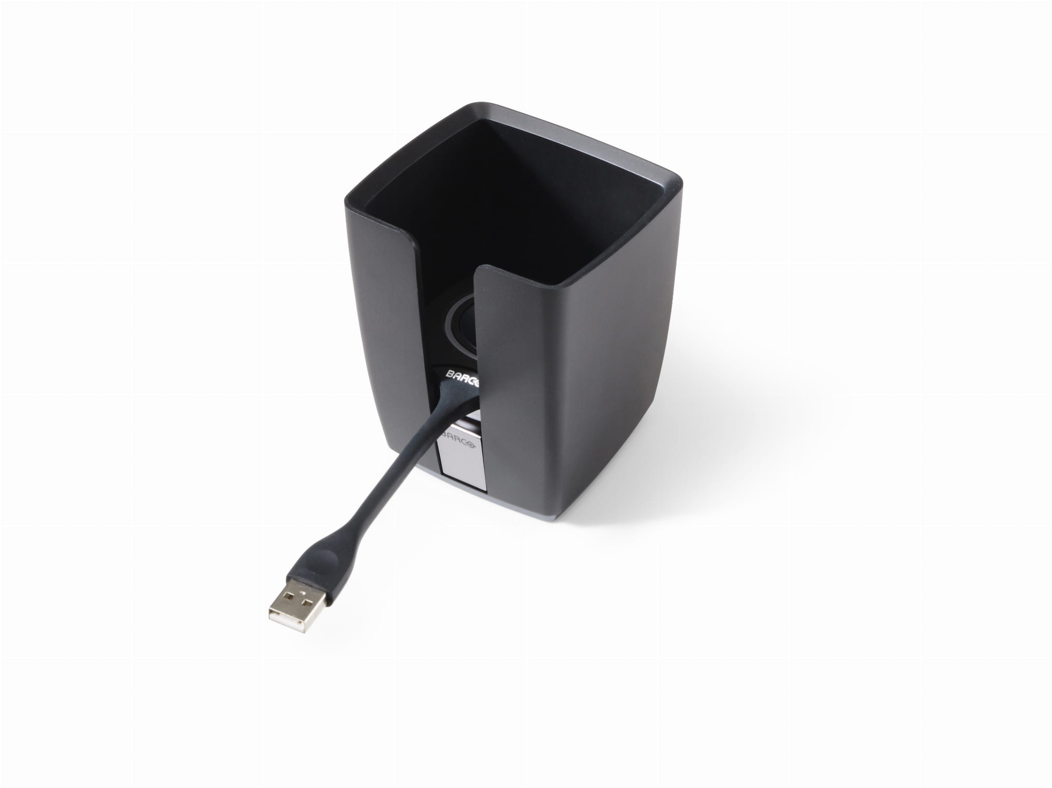Klasyczny pojemnik ClickShare służy do przechowywania przycisków, gdy nie są używane. W pojemniku mogą znajdować się maksymalnie 4 przyciski.