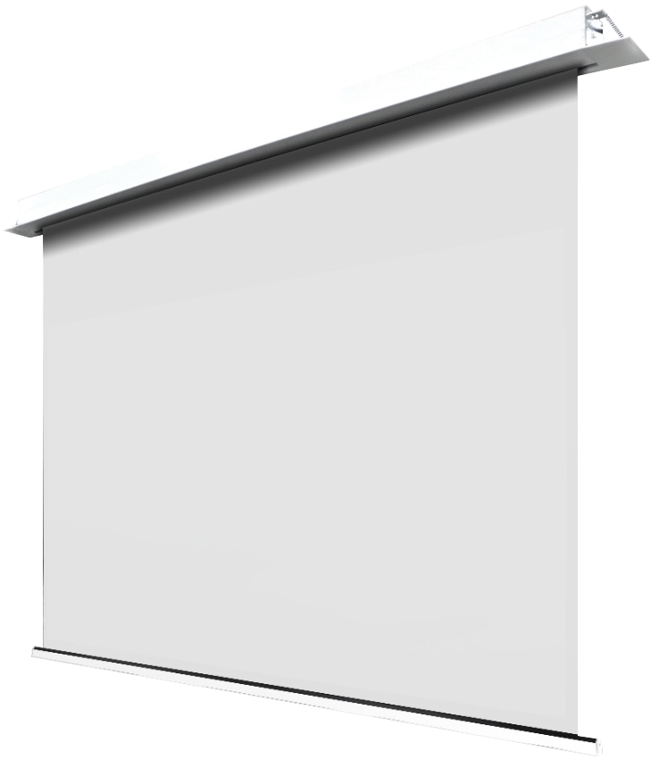 Elektrycznie rozwijany ekran projekcyjny z linii profesjonalnej PREMIUM dedykowany do zabudowy sufitowej ze zintegrowanym sterowaniem IR + RF+ RS + Dry Contact