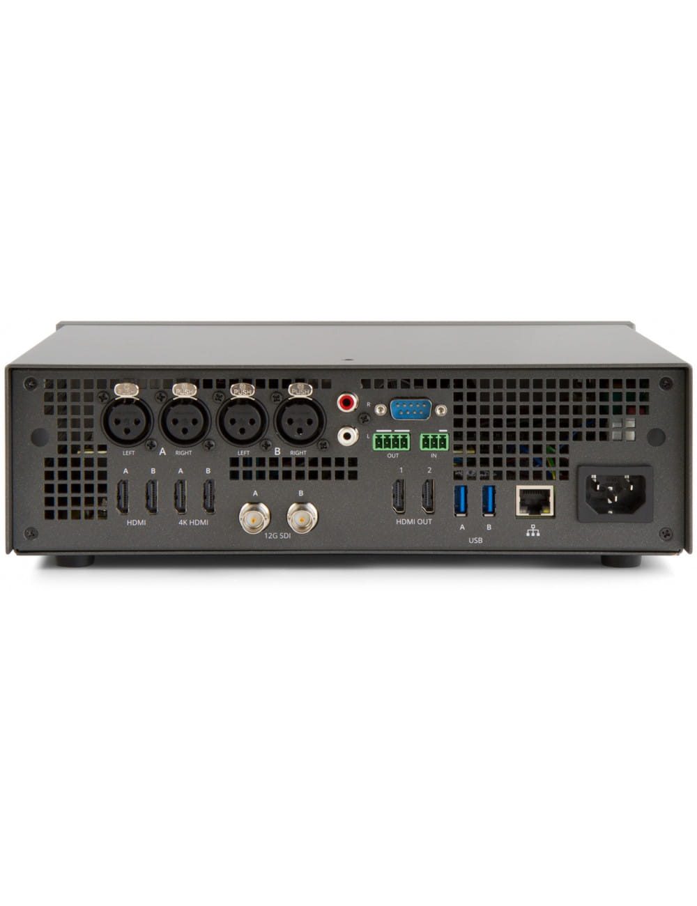 (4) XLR: two stereo pairs left/right by default (or four mono ports) |