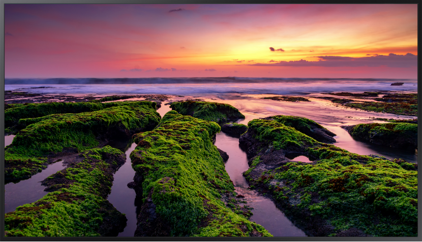 Wąskie ramki i symetryczna budowa urządzenia zapewniają bezproblemowe wkomponowanie się w każde otoczenie, prostą instalację i uruchomienie. By zapewnić maksymalną oszczędność miejsca, wszystkie złącza są skierowane na zewnątrz, dzięki czemu ekran można zawiesić blisko każdej ściany.