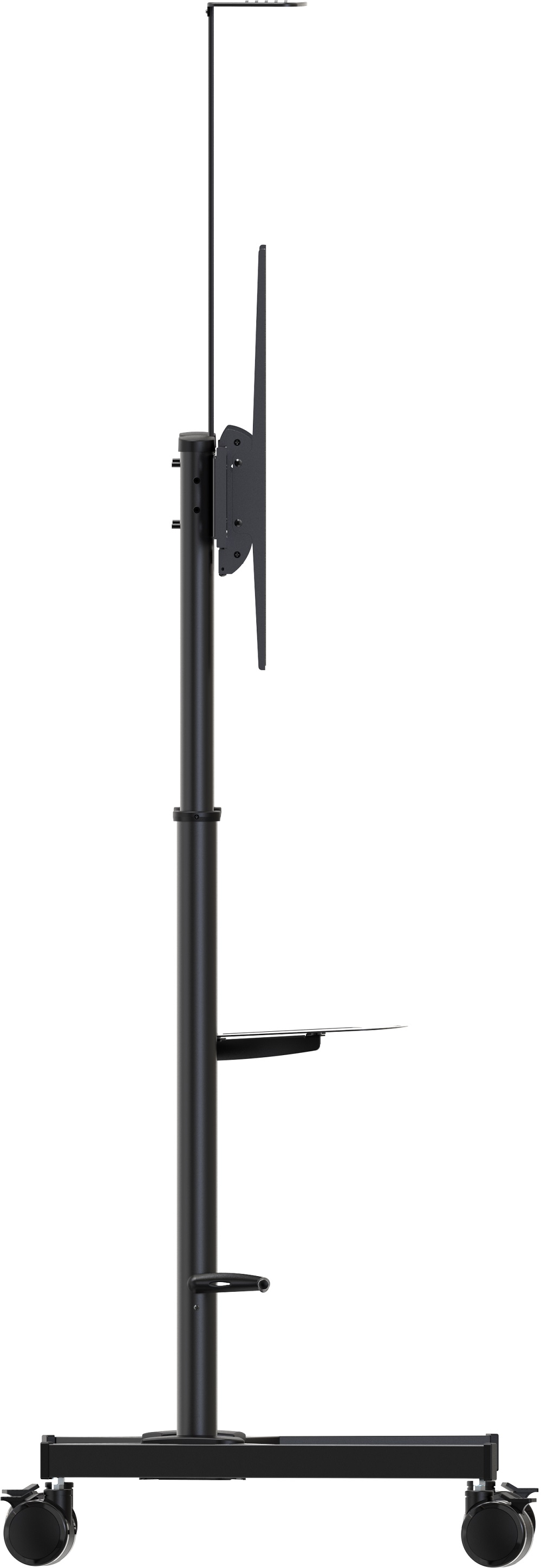 Statyw Vision F25 wykonany jest z wytrzymałej stali, a dzięki czterem dużym kółkom o rozmiarze 4 cale, jest bardzo łatwy w przemieszczaniu. Dodatkowo zainstalowana została korbka, która pozwala na łatwą zmianę wysokości zamontowanego monitora. Ten atrakcyjny model świetnie sprawdzi się w szkołach, podczas publicznych wystąpień lub w każdej firmie przy szkoleniach, ponieważ z lekkością może być przesuwany między salami. W zestawie znajdują się dwie półki, które umożliwiają odłożenie laptopa lub zamontowanie kamery.