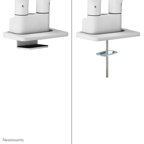 Czarne płytki VESA uchwytu NEXT One stylowo komponują się z czarnym tyłem ekranu. DS70S-950WH2 nadaje się do ekranów, które mają otwory VESA 75x75 lub 100x100 mm. W przypadku niestandardowych wzorów otworów, Neomounts oferuje różne opcjonalne płyty adaptera VESA. Ramię monitora jest wyposażone w system szybkiego zwalniania VESA i jest dostarczane zarówno z zaciskiem topfix, jak i przelotką dla szybkiej i łatwej instalacji.